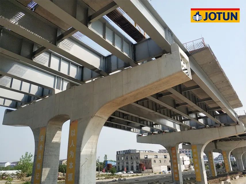 浙江臺(tái)州路澤太高架快速路項(xiàng)目橋梁為鋼板組合結(jié)構(gòu),全長(zhǎng)17.5公里,全線鋼板梁共計(jì)4,200余片,是目前國內(nèi)最長(zhǎng)的鋼結(jié)構(gòu)高架橋梁公路,是臺(tái)州人民期待已久的民生大通道項(xiàng)目。佐敦高固含品質(zhì)氟碳產(chǎn)品為此項(xiàng)目提供保護(hù),共約50萬平米涂裝面積。