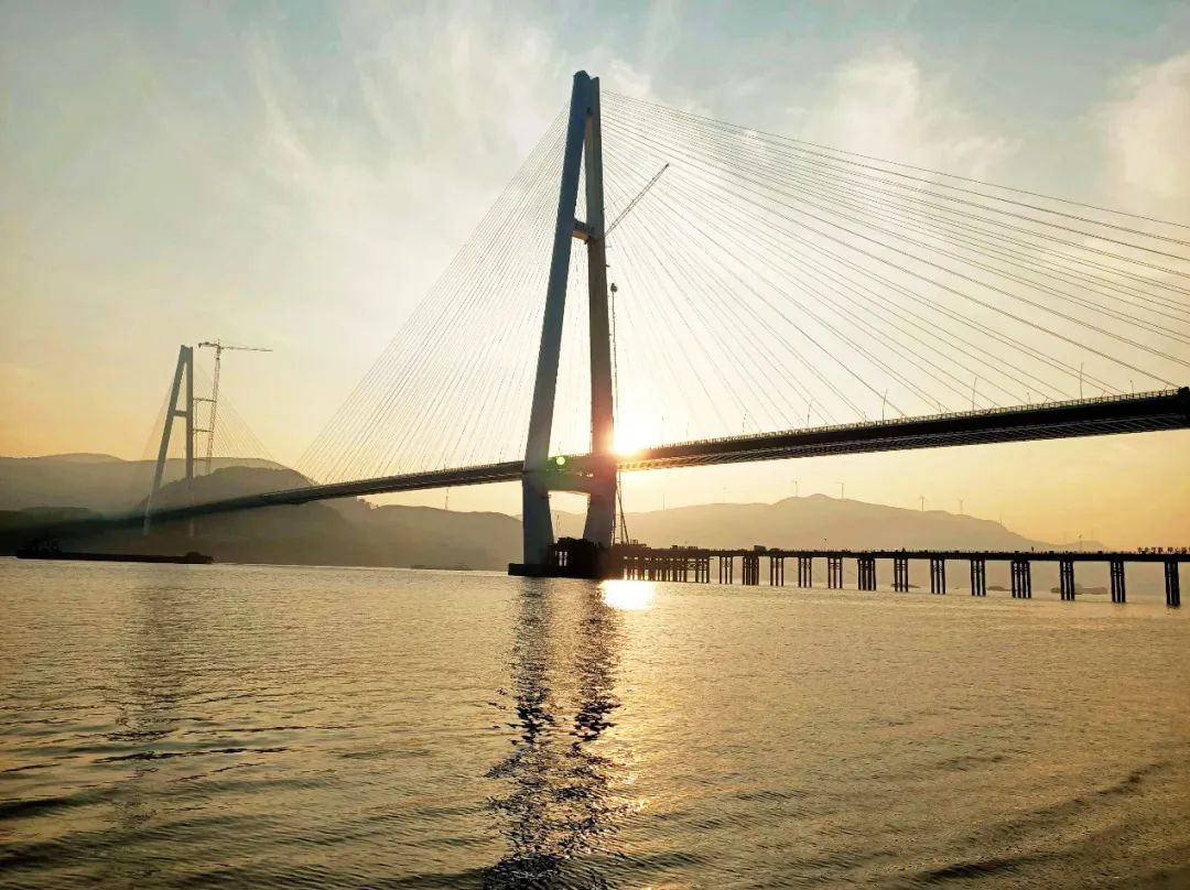 湖北赤壁長(zhǎng)江大橋連接湖北洪湖、赤壁革命老區(qū),是世界跨度最大的鋼混組合梁斜拉橋。